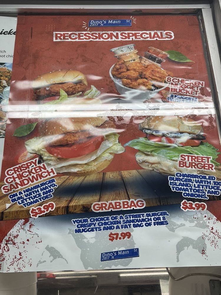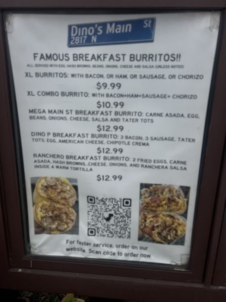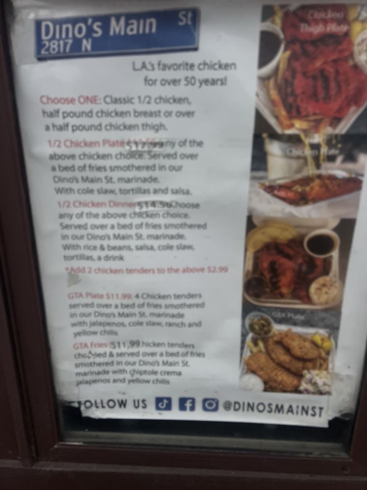 Introducing the menu at Dino's Burgers, located in Los Angeles, where delicious Latin-inspired dishes await. From the tempting Dino's Main St. X Cali Caliente Chicken Combos to the mouthwatering Loaded Fries and Munchy Boxes, there is something for every craving. Pair your meal with a refreshing Large Horchata or a zesty Orange Bang. Customers rave about the friendly staff and nostalgic atmosphere, making each visit a memorable experience. Don't miss out on the must-try Cali Caliente chicken burrito and the iconic MOBB FRIES. Dive into the flavorful options and enjoy a taste of tradition at Dino's Burgers.